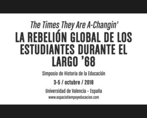 Más información en: La rebelión global de los estudiantes durante el largo ’68 – Simposio de Historia de la Educación (Universidad de Valencia, 3-5 de octubre de 2018)